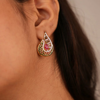 Set of 2|Ruby & Enamel Lab Grown Diamond Jewelry Set | Pendant & Earrings