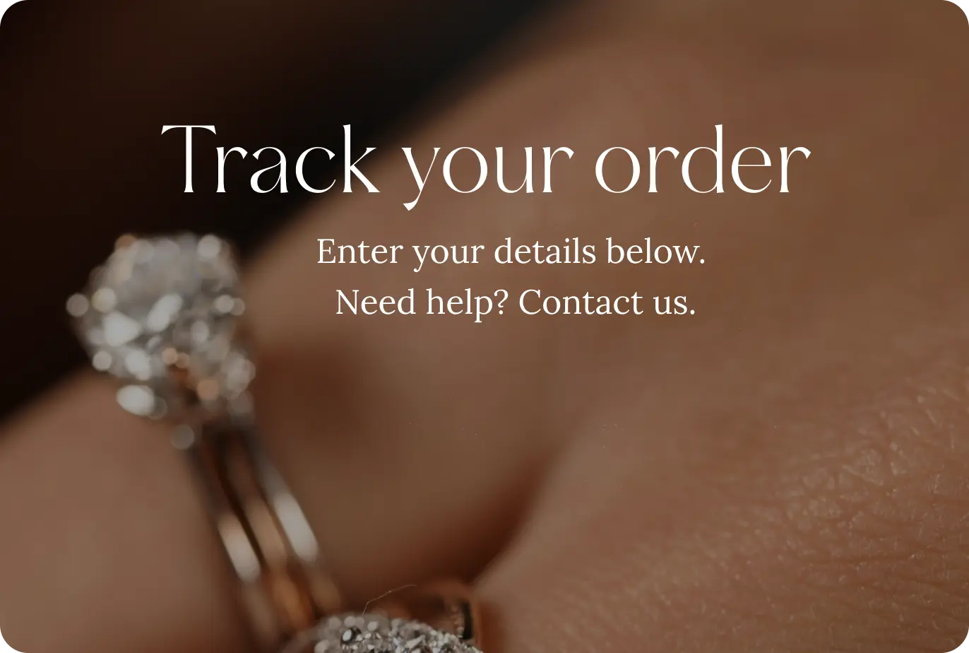 "A customer support banner for Réia's mobile website that shows two women's hands wearing bangles and a lab-grown diamond ring. The image communicates consideration, care, and the brand's dedication to offering individualized support and a flawless shopping experience.