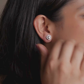 Cluster Halo Diamond Stud Earrings - Luxurious radiance in white gold, crafted with hallmarked 14 KT metal purity.