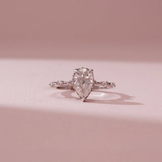 The raindrop design showcases brilliant diamonds with EF color and VVS clarity creating a soft, elegant effect reminiscent of morning dew.