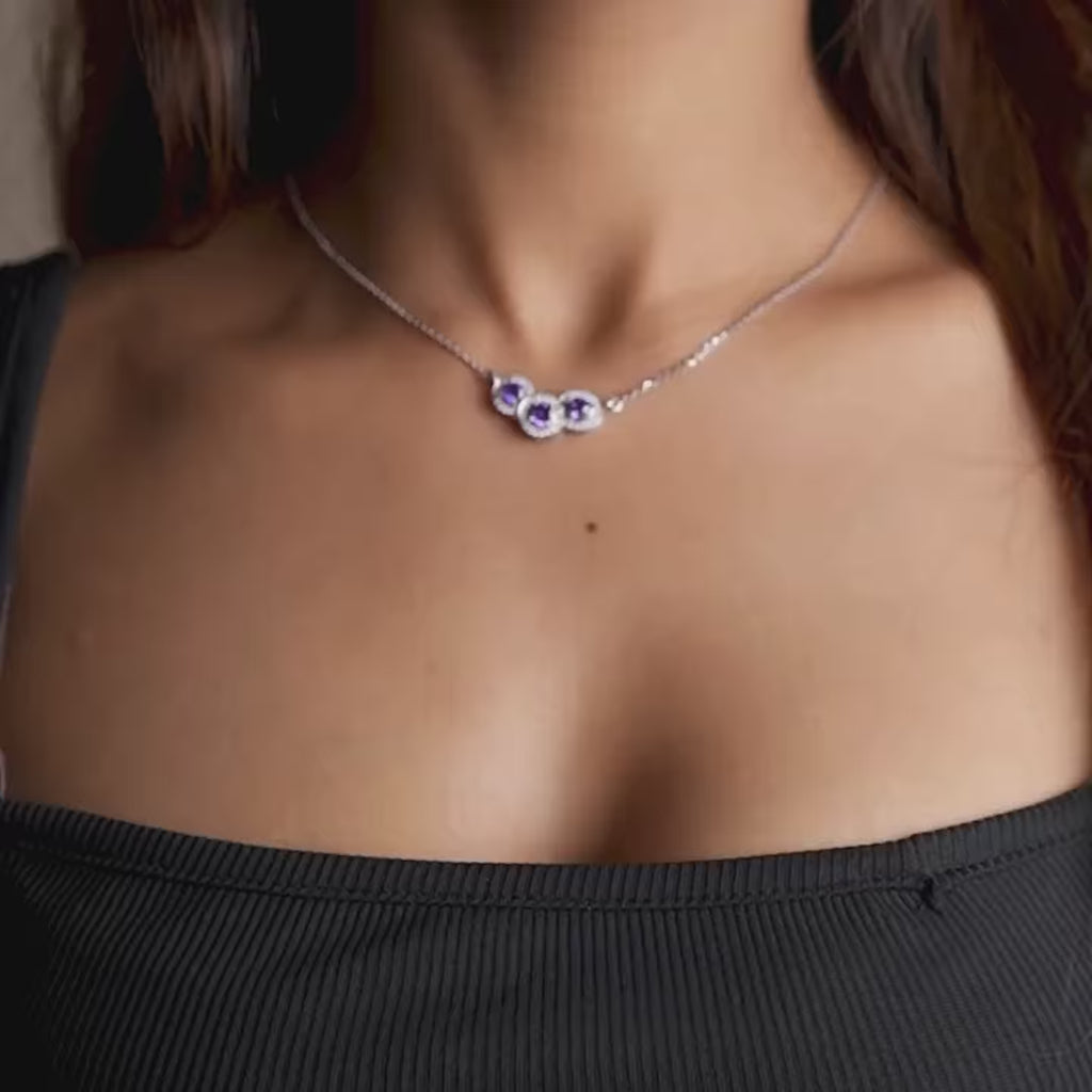 Purple Triad Diamond Necklace - Modern elegance in white gold, featuring a striking three-part diamond arrangement.