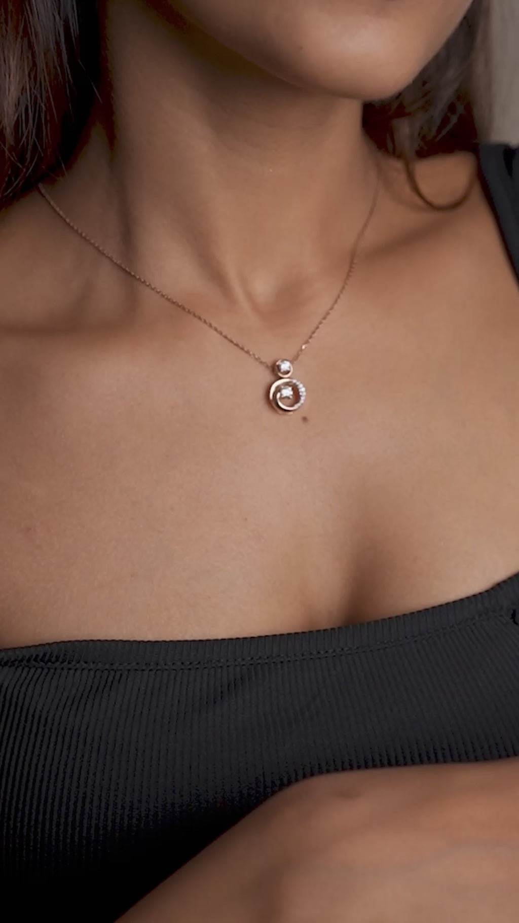 Swirl Charm Diamond Pendant - Elegant motion captured in rose gold, featuring a flowing swirl design with sparkling diamonds.
