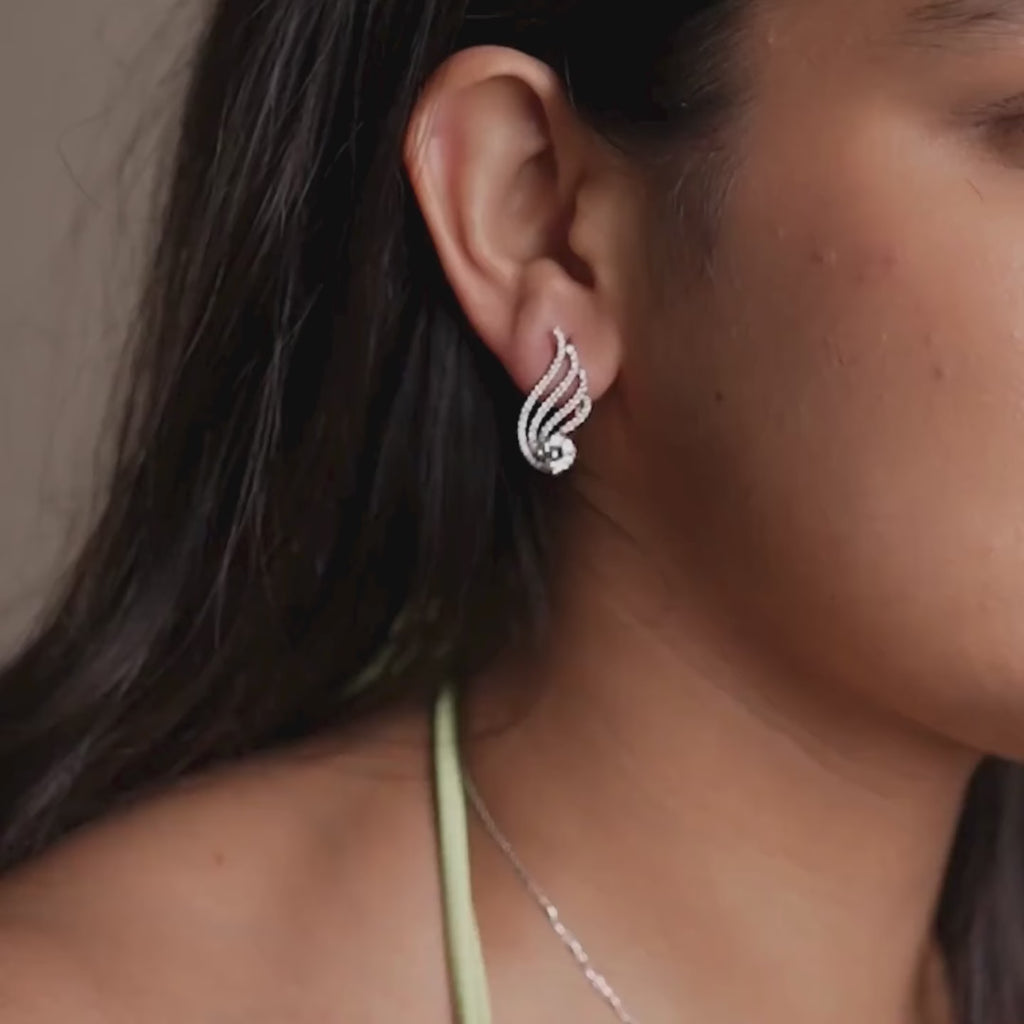 Name of the Earrings: Wings of Light Diamond Stud Earrings - encapsulate freedom and transformation, beautiful artistic shapes evoking idea of flight and glimmering hope.