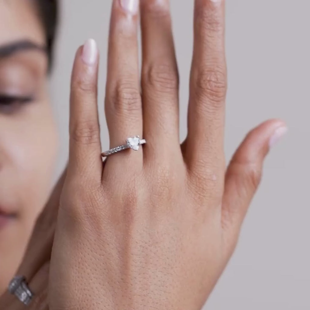 The heart-shaped diamond is the focal point, surrounded by sparkling accent stones with GH colour and VS clarity. Perfect for engagements, anniversaries, or as a symbol of everlasting affection.