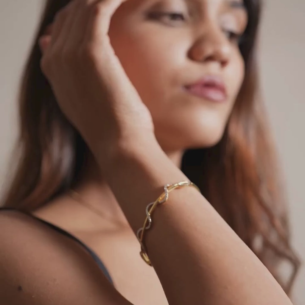 Wave Crest Diamond Bracelet - Ocean-inspired elegance in yellow gold, crafted with hallmarked 14 KT metal purity, size 2.4.